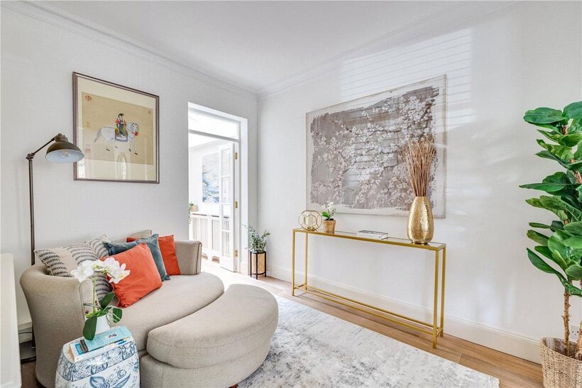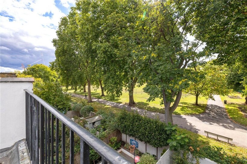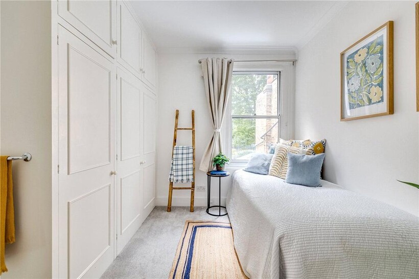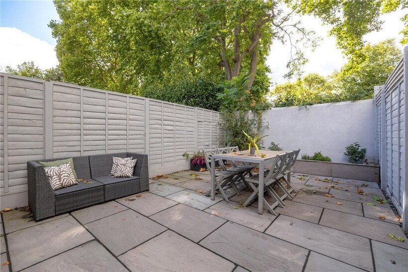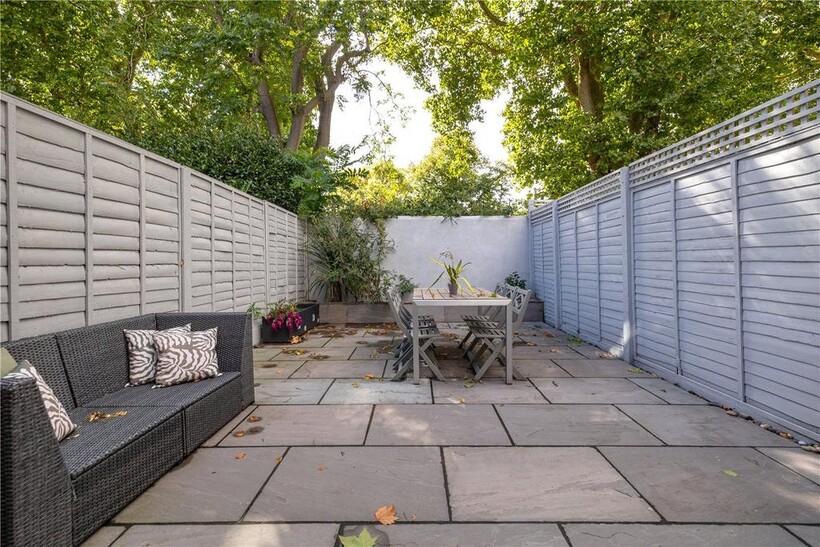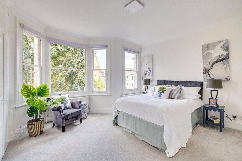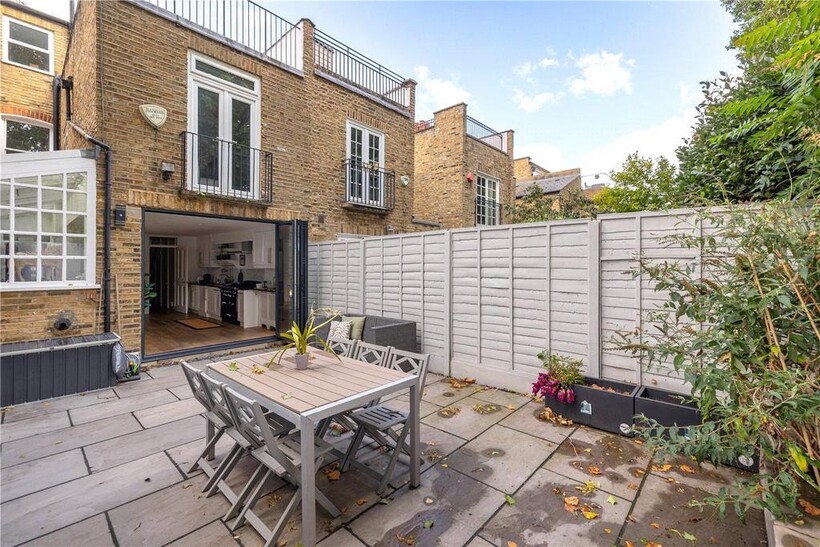 The top floor is home to the master bedroom with built-in storage and its own modern shower room. From here, French doors open onto a large private roof terrace with leafy views across South Park.