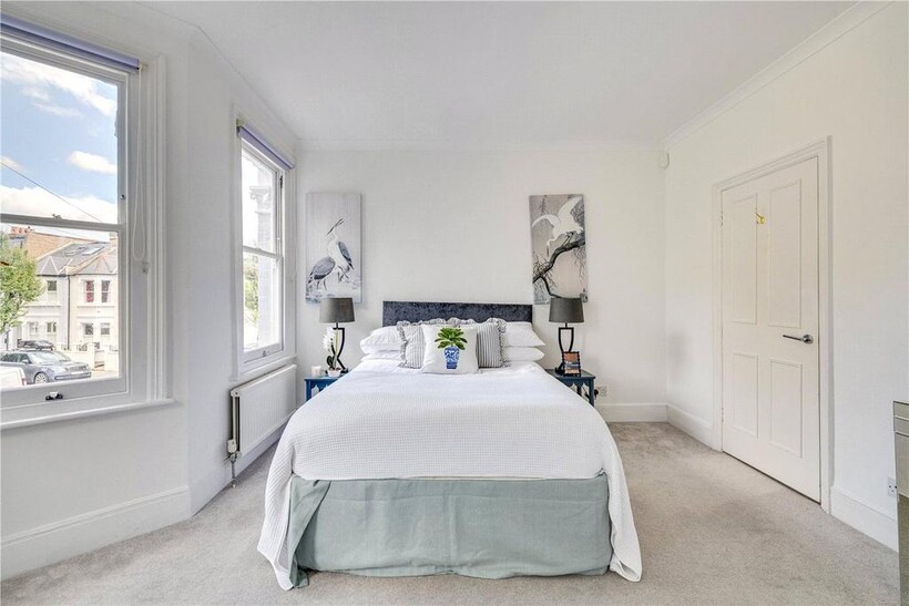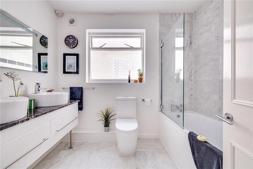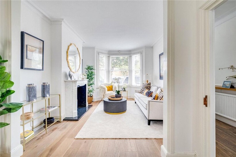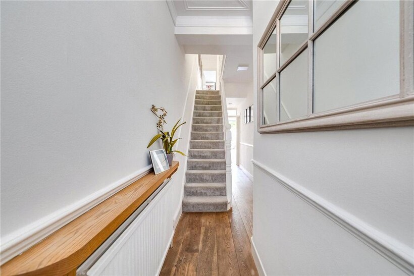 On the first floor there are three well-proportioned bedrooms, including a generous bedroom with a bay window overlooking the quiet residential street. The rooms are served by a stylish family bathroom finished with twin basins and marble tiling.