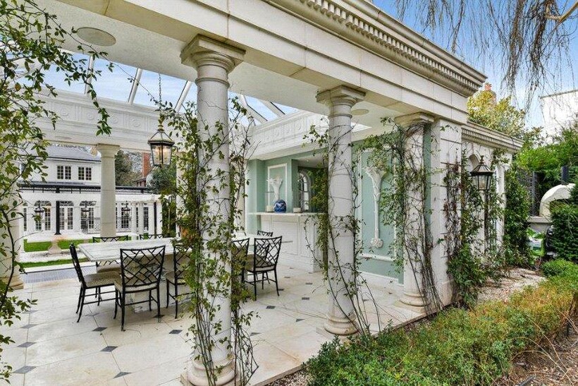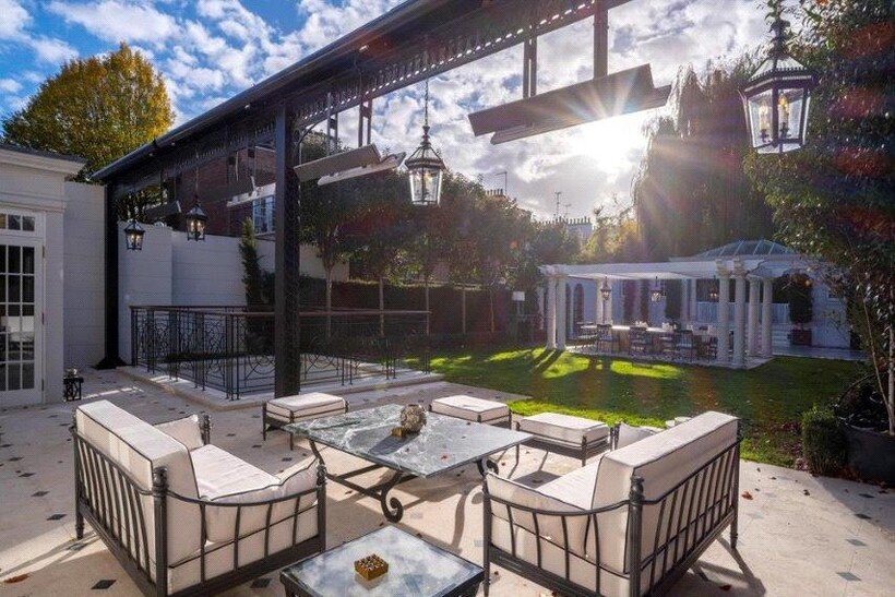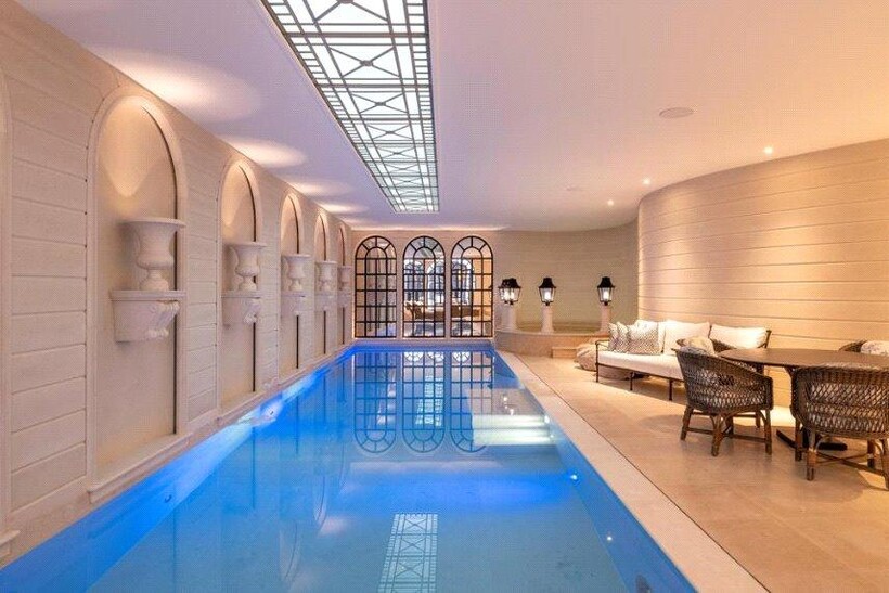 bar, dining for 30 & a dance floor is the perfect space to host. An indoor swimming pool, Jacuzzi & spa are also located on this floor. Further amenities can be found in the basement which include a fully equipped Technogym, treatment room, storage room & the professional kitchen. The thoughtfully designed gardens both south & west facing includes a formal lawn space, wooden pergola with a stone dining table that seats 18, marble bar with integrated appliances, external sound system, pizza oven, outdoor swimming pool & outdoor heat lanterns.