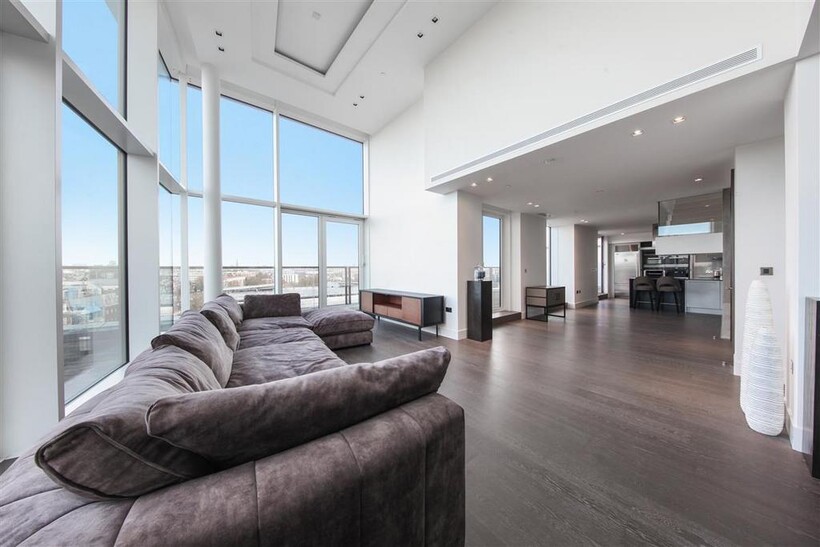 Expansive 2,082 sq ft penthouse in the prestigious 375 Kensington High Street development, featuring three double bedrooms, all en-suite, a guest bathroom, and impressive resident-only facilities including parking for two cars.Elegant and Spacious Living