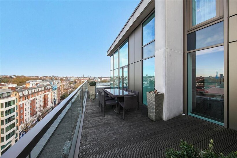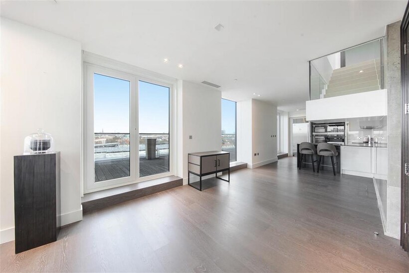 Expansive 2,082 sq ft penthouse in the prestigious 375 Kensington High Street development, featuring three double bedrooms, all en-suite, a guest bathroom, and impressive resident-only facilities including parking for two cars.Elegant and Spacious Living