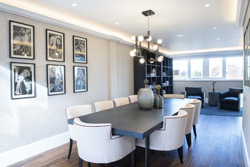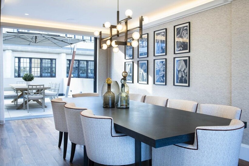 Via a private lobby, you enter an apartment which has been created for a luxurious bright and opulent living experience. The reception and dining room comes complete with expansive windows and an open plan, fully integrated kitchen/breakfast room, offering spectacular entertaining and living spaces.A stunning customized glass staircase offers uninterrupted double height views across London, which in turn leads you up into a unique entertainment and relaxation space offering several lavish areas as well as comfortable dining for 10 people. The open plan feel combines perfectly with two stunning outdoor seating areas that extends seamlessly through from the multiple Bi Folding doors.