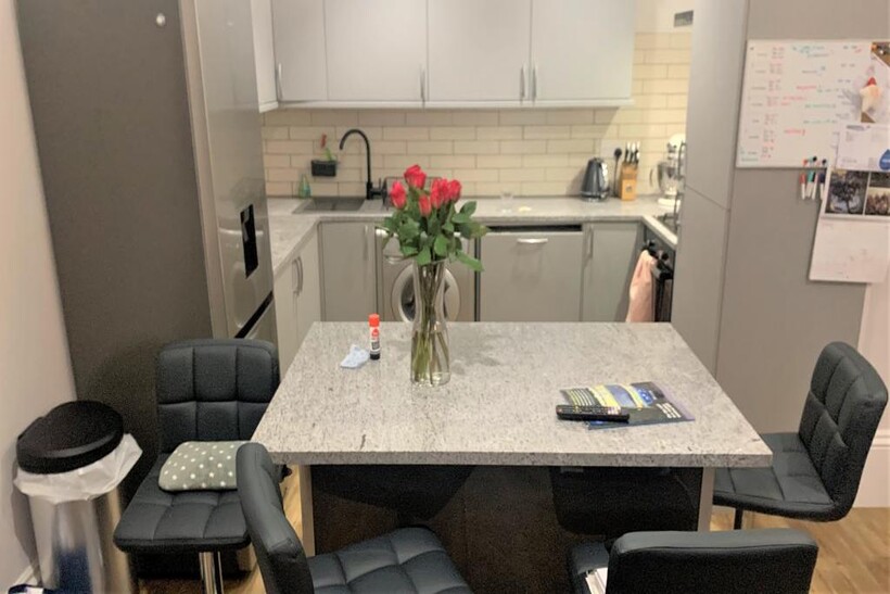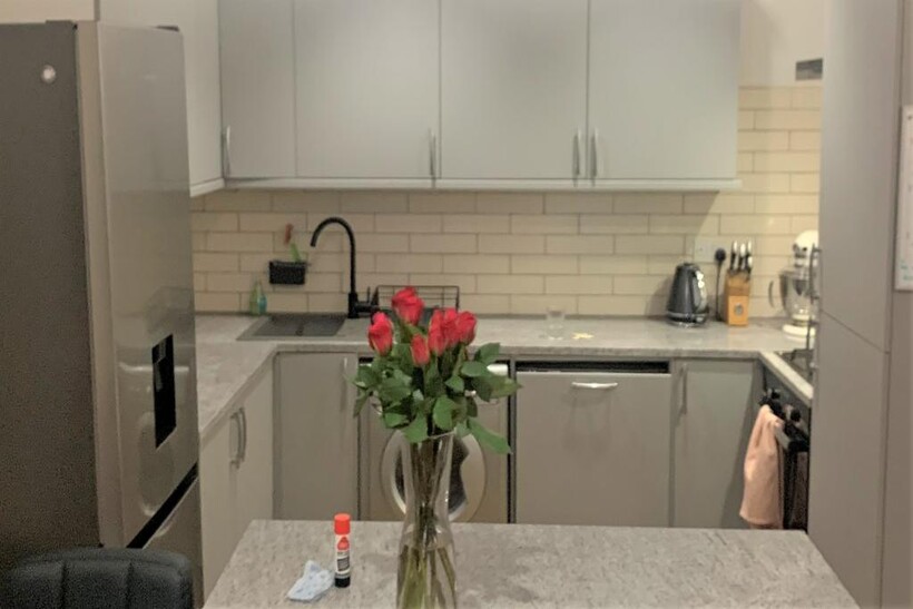 The apartment features a very spacious open plan living space consisting of a contemporary designer kitchen with state of the art fittings with double oven, gas hobs, washer dryer, dishwasher, 2 x luxury couches and wall mounted TV.