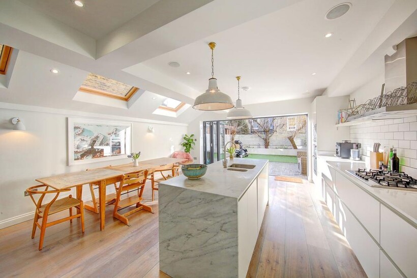 This exquisite, fully-refurbished and extended Victorian house with an outstanding design, style and finish, provides substantial accommodation (c. 2200 SQ.FT. / 204 SQ. M.). With five bedrooms, three bathrooms, wonderful living space and a sunny SW-facing garden it is a superb and spacious family home. Situated “between the commons”, close to excellent schools including Thomas’ and Honeywell Primary it is also very convenient for connections to The City/West End via Clapham South tube. The specialist shops, bars and restaurants of fashionable Northcote Road are close by. It is offered with no onward chain.Immaculately presented throughout, this wider-than-average, five-bedroom house was beautifully extended and refurbished extensively, inside and out, in recent years and blends delightful original character with contemporary design and styling. The spacious, ground-floor reception rooms, which have lovely, high, ornate ceilings, have been opened up into one large double space with wide bay window to the front and Crittall-style, glass doors dividing the rear reception room from the hallway, creating a wonderful sense of light and space. The rooms retain detailed ceiling cornices, a beautiful marble fireplace complete with wood burner, and some lovely bespoke joinery including cupboards and display shelves.The gorgeous kitchen/family room has been extended into the side return and opens onto the attractively landscaped and very sunny south-west-facing rear garden. The kitchen has sleek modern units, integrated appliances and a central island with marble worktop. There is cloakroom/WC on the ground floor and a utility room downstairs in the under-hallway basement, giving a practical edge. The whole house has wooden flooring, apart from the bathrooms which are tiled, and is neutrally decorated.The cellar has been made into a most useful utility room, plumbed with appliances and has further storage space. Upstairs there is a large principal suite which incorporates a bespoke dressing area and a spacious contemporary bath/shower room. In addition, there are four more bedrooms over two floors - three good double bedrooms and a single room/office - which are served by a further bathroom and a shower room, all fitted to a superb standard.Wroughton Road is within half a mile of Clapham South underground which has direct services into The City and the West End. Clapham Junction Station is a little further, which has overground links both into Central London and out into the rest of the country. There are excellent schools close by in both the state and private sectors. The recreational spaces of Clapham and Wandsworth Commons are a short walk away as are the shopping, wining and dining choices of Northcote Road.