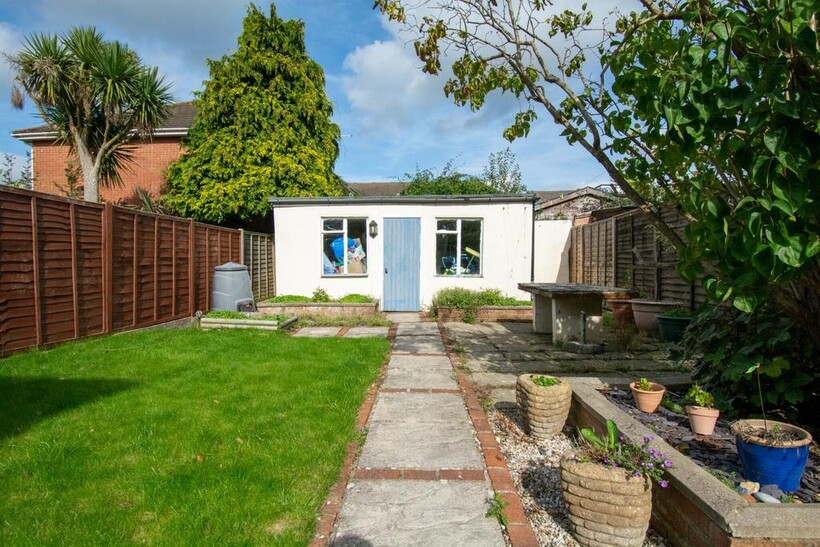 Outside, the property features a driveway for two cars and a spacious rear garden with a patio area, decking, and a large shed equipped with power and lighting - perfect for storage, hobbies, or a workshop.