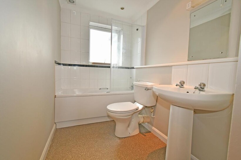 BATHROOM 10'7 x 5'6 (max) Partly tiled with suite comprising; pedestal wash hand basin, low flush w.c. and panelled bath with mixer tap, shower attachment and glazed screen. Coved ceiling, extractor fan, recess halogen spotlighting, light/shaver point and high-level convector heater. Newly laid flooring