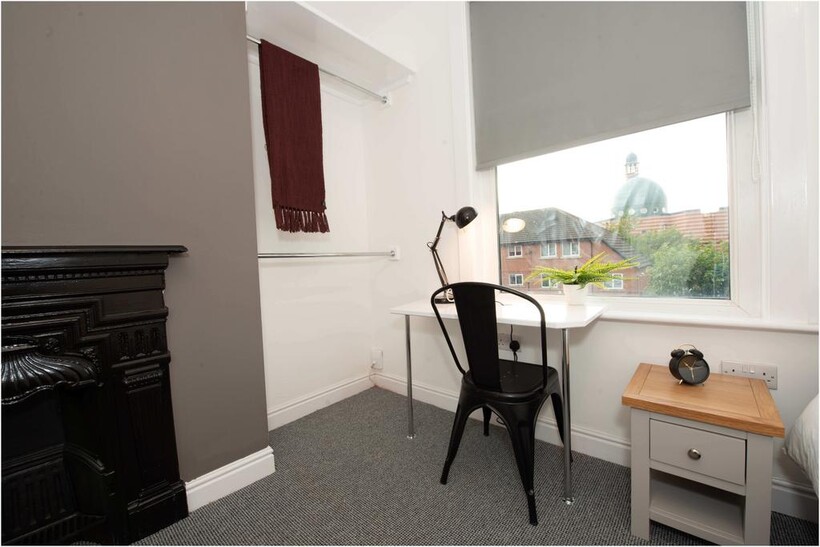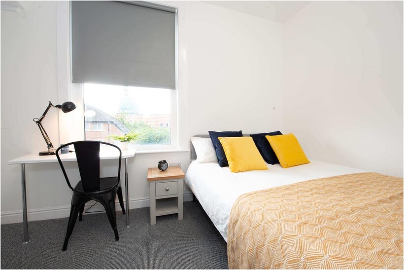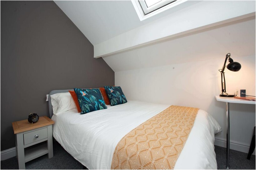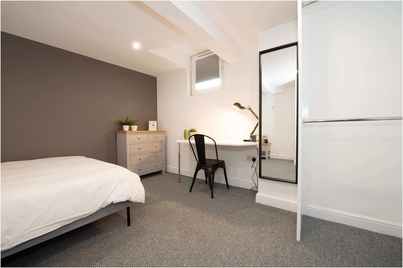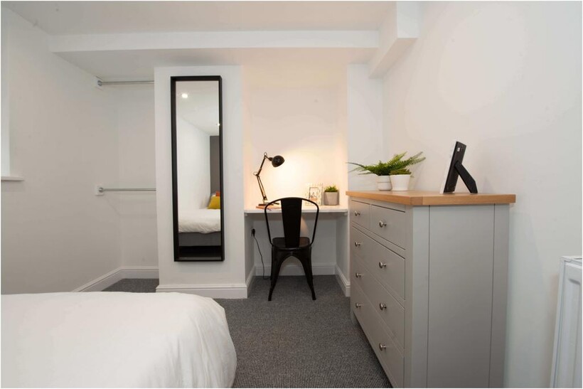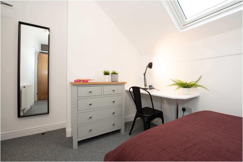 • 6 large double bedrooms, fully furnished with everything you need: double bed, wardrobe, chest of drawers, bedside table, full-length mirror, desk, and chair - ideal for both study and relaxation.