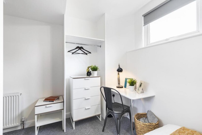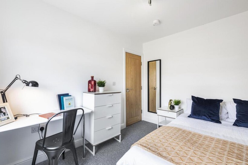 • 5 large double bedrooms, fully furnished with everything you need: double bed, wardrobe, chest of drawers, bedside table, full-length mirror, desk, and chair - ideal for both study and relaxation.