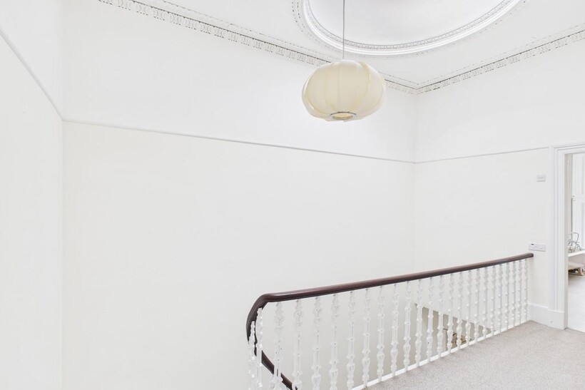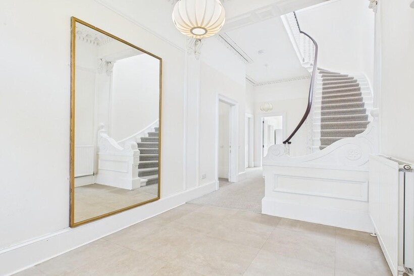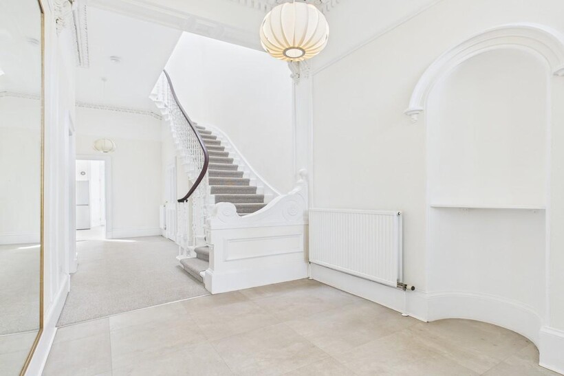 The front garden leads to stepped main door which in turn bears ingress to the large open staircase to the upper level - just one neighbouring property on the basement level shares the building, affording privacy and seclusion in equal measure.