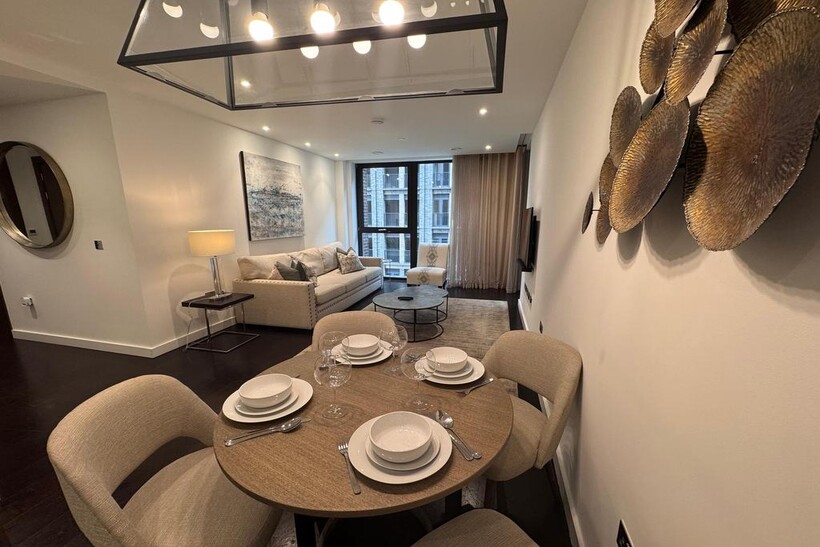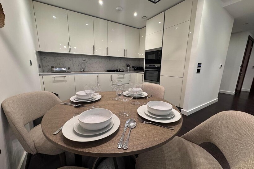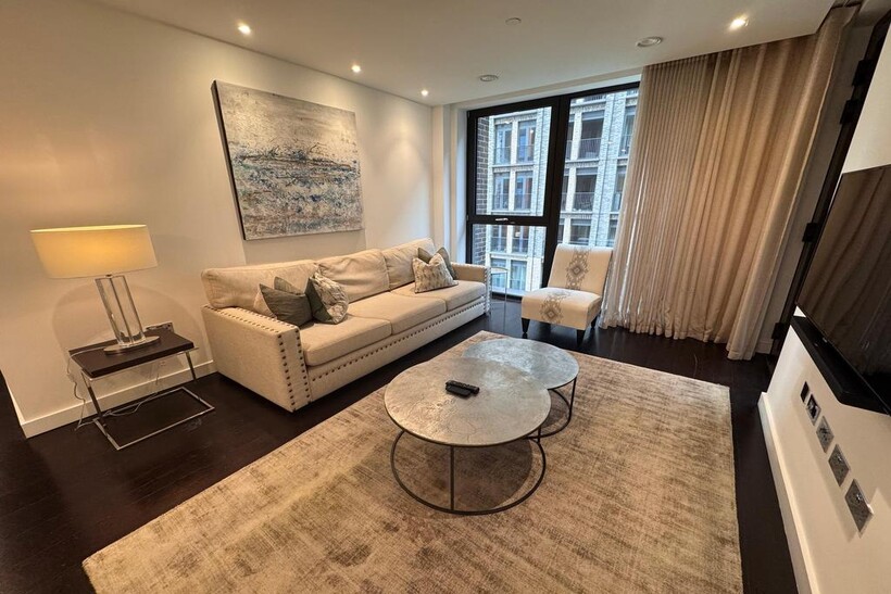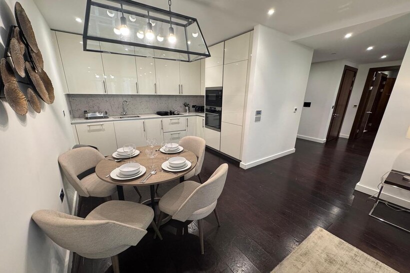 A stunning 902 sq. ft. two-bedroom apartment set on the 3rd floor of a prestigious Nine Elms development, offered fully furnished to an exceptional standard.
