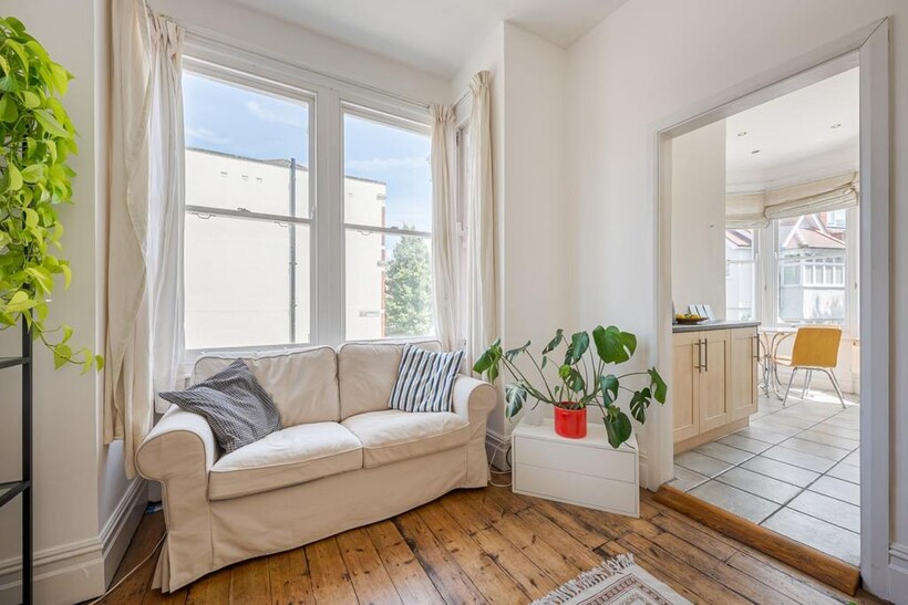 A stunning end-of-terrace, light and bright one-bedroom flat. It comprises a spacious bathroom with shower over bath and heated towel rail, a charming living room, eat-in kitchen and a large double bedroom. The flat benefits from wooden flooring throughout and is available on a part-furnished basis. The flat is located on the sought-after road of Abbeville, where there is a good selection of cafes, restaurants, shops and beauty boutiques. Clapham Common underground (Northern line) is only 0.3 miles walk away.