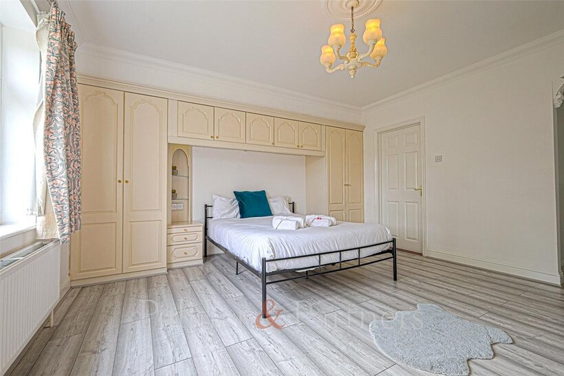 Available now at £3,250 per calendar month, this substantial home is well-suited for professionals or families seeking generous accommodation in a quiet yet convenient location.