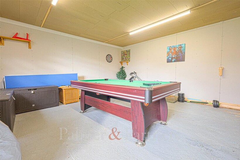 Outside, the property enjoys a private garden. The garage has been converted into a games room with a pool table, and there is ample off-street parking to the front.