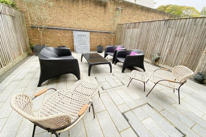 Spread over five floors, the home is filled with natural light and features three reception rooms, offering versatility for family life and entertaining. The open-plan kitchen and family room opens directly onto a southwest-facing garden, while the top-floor lounge leads out to a private terrace with open views.