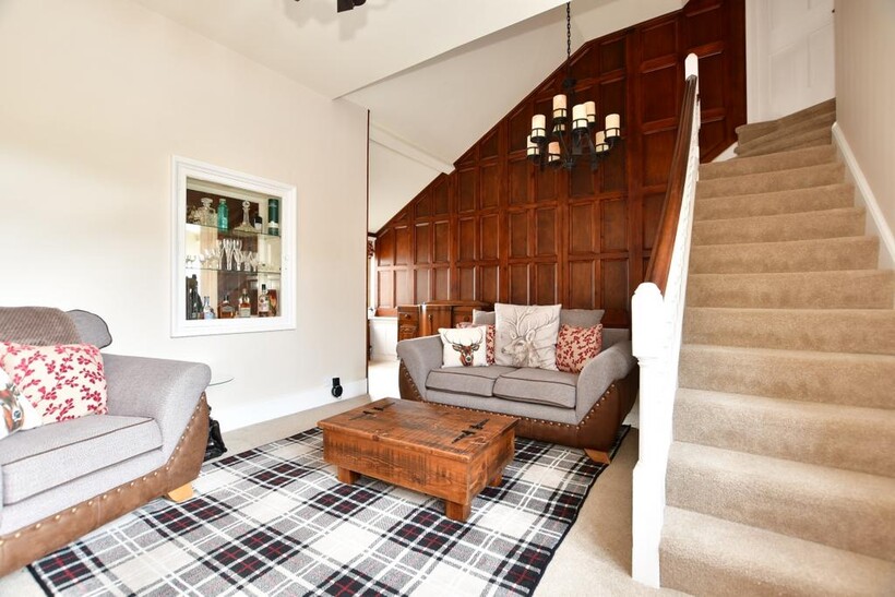 The apartment features two distinctive round bedrooms located in the castle’s turret, providing a truly characterful living experience. The accommodation also includes a spacious living area, a well-equipped kitchen, and modern shower room, all blending period charm with contemporary comfort.
