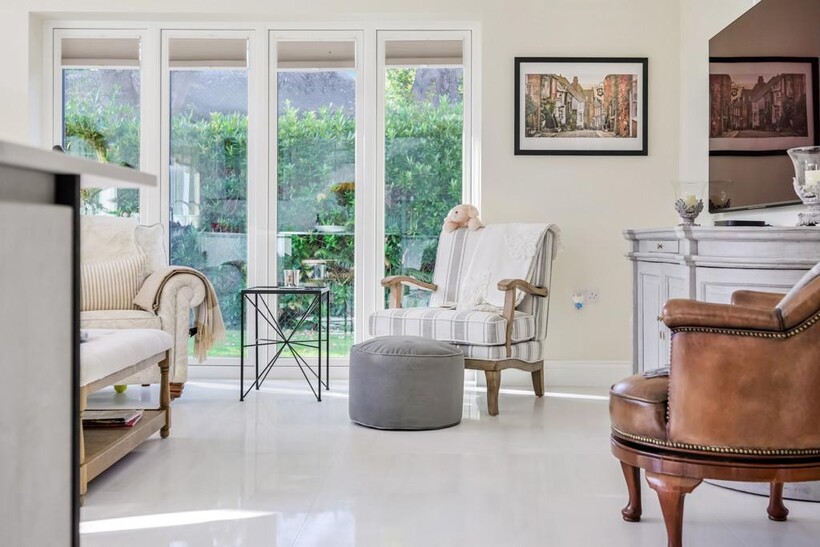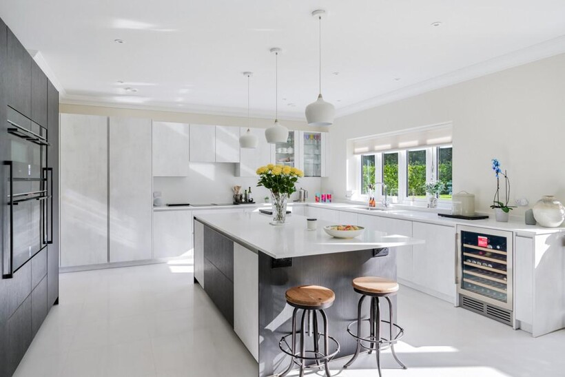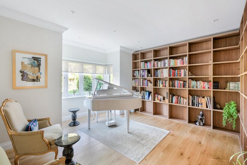 At the centre of the design lies a spectacular open-plan kitchen, dining and family space – a light-filled setting perfect for gatherings and everyday living. Tailored German cabinetry, high-specification integrated appliances, bespoke finishes, and a seamless connection to the gardens ensure this is a space to savour.