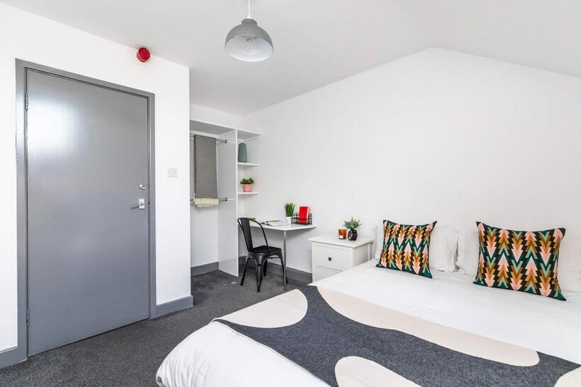 • 3 large double bedrooms, fully furnished with everything you need: double bed, wardrobe, chest of drawers, bedside table, full-length mirror, desk, and chair - ideal for both study and relaxation.