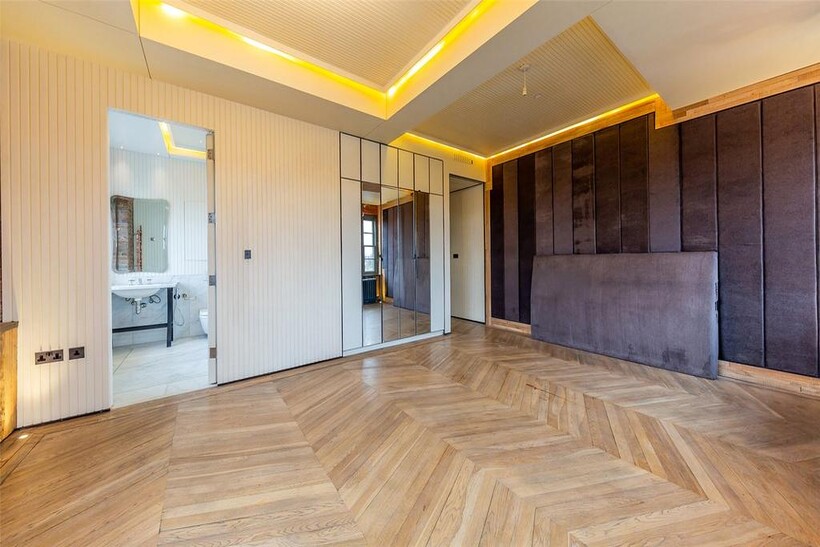 Main bedroom with large fitted walk in wardrobe leading with ensuite bathroom with terrace