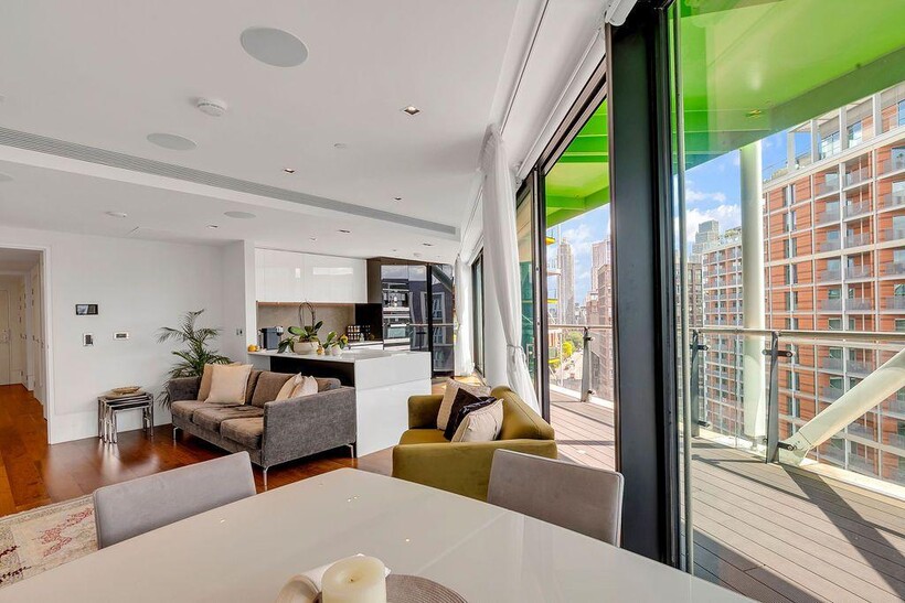 PLEASE QUOTE REF: MR0560An immaculately presented two-bedroom, two-bathroom apartment (990 sq ft) situated on the eleventh floor of a sought-after riverside development, moments from excellent transport links and local amenities.Epitomising luxury riverside living, this superb apartment offers high-spec contemporary accommodation with exceptional attention to detail throughout.The property features an impressive open-plan reception, kitchen and dining area with direct access to a private balcony, perfect for entertaining or relaxing with river views. The kitchen is fitted with premium Miele and Gaggenau appliances, including an induction hob, steam oven, coffee machine, wine conditioning unit, and warming drawers, finished with sleek high-gloss cabinetry and integrated lighting.There are two spacious double bedrooms, both with access to a second private balcony, including a principal suite with a stylish en-suite shower room. A further modern family bathroom and ample fitted storage complete the internal layout.Further benefits include air conditioning, underfloor heating, double glazing with electric curtains and blinds, smart home automation (lighting, heating, and concierge services), integrated surround sound speakers, and elegant neutral décor.Residents of this landmark riverside development enjoy access to first-class on-site facilities, including a gym, spa, swimming pool, cinema room, virtual golf, residents’ lounges, study and work spaces, and a 24-hour concierge.Conveniently located close to Battersea Power Station and Nine Elms stations, with additional transport options via nearby bus routes and riverboat services from Battersea Power Pier. Local amenities, cafés, restaurants, and shops are moments away, with Chelsea, King’s Road, and Battersea Park all within easy reach.Available from December – offered furnished or unfurnished.Viewings highly recommended.