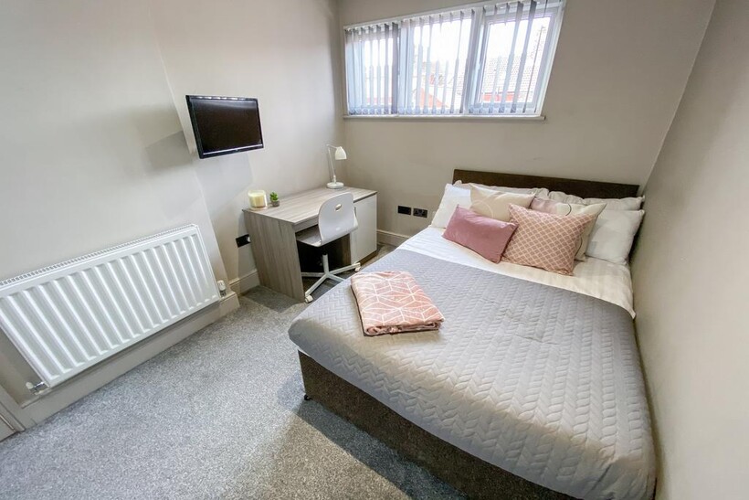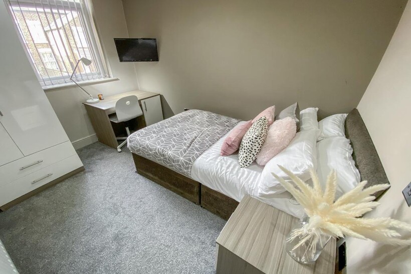 -6 spacious, fully furnished bedrooms, each with a double bed, desk and chair & ample storage space