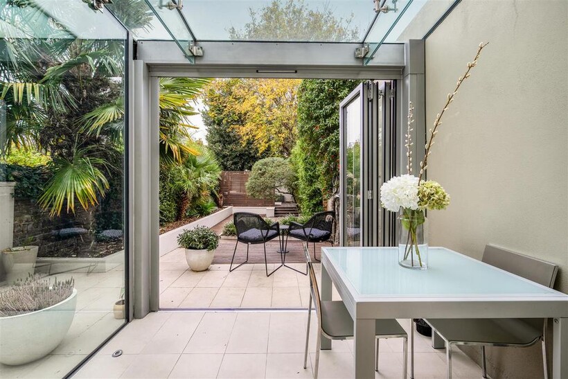 Available for a Short Let is this interior designed Georgian home with a contemporary extension, modern kitchen and bathroom, west facing garden, and off-street parking, all on a small one-way road in Windsor town centre.The ground floor has had a unique glass extension to the rear, which houses the modern kitchen and dining space with underfloor heating. There is also a living and dining room with fireplace and storage, plus access to a full-height lower ground floor which could be used as a yoga room, gym, cinema room, home office or occasional bedroom.