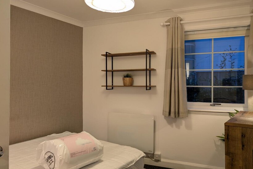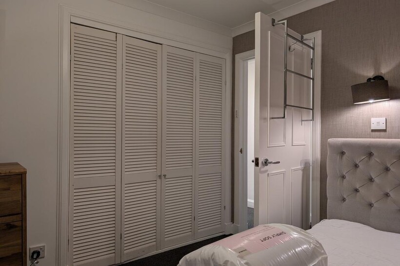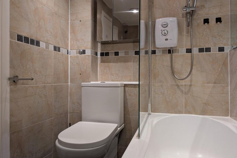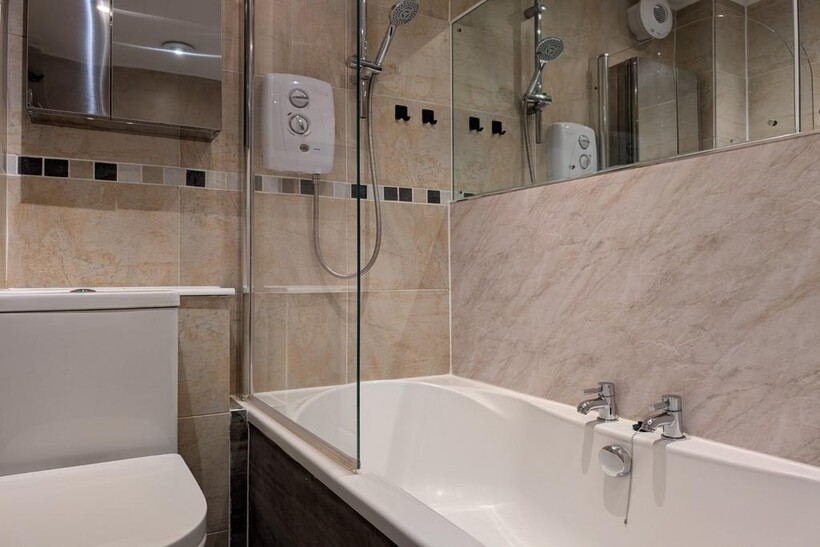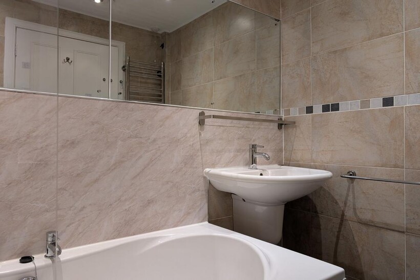 There are two well-proportioned double bedrooms, each with built-in storage, and a sleek, contemporary bathroom complete with shower over bath.