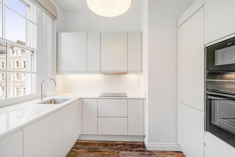 Set on the second floor of a handsome period building, this beautifully presented two-bedroom apartment combines elegant proportions with contemporary finishes throughout. The property offers a spacious reception room with high ceilings and large sash windows that flood the space with natural light. The sleek, separate kitchen features integrated appliances and ample storage, while both bedrooms are generously sized and served by a modern bathroom.