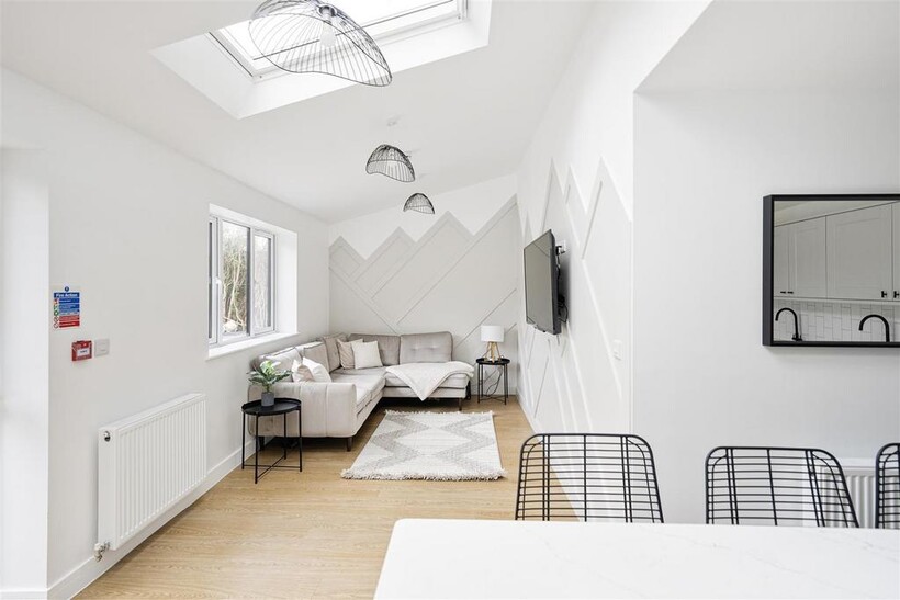 •Stylish, High-Standard Finishes: Enjoy an open-plan kitchen/living area with a Smart TV and cozy corner sofa—perfect for downtime with friends.