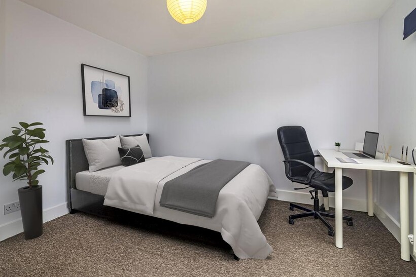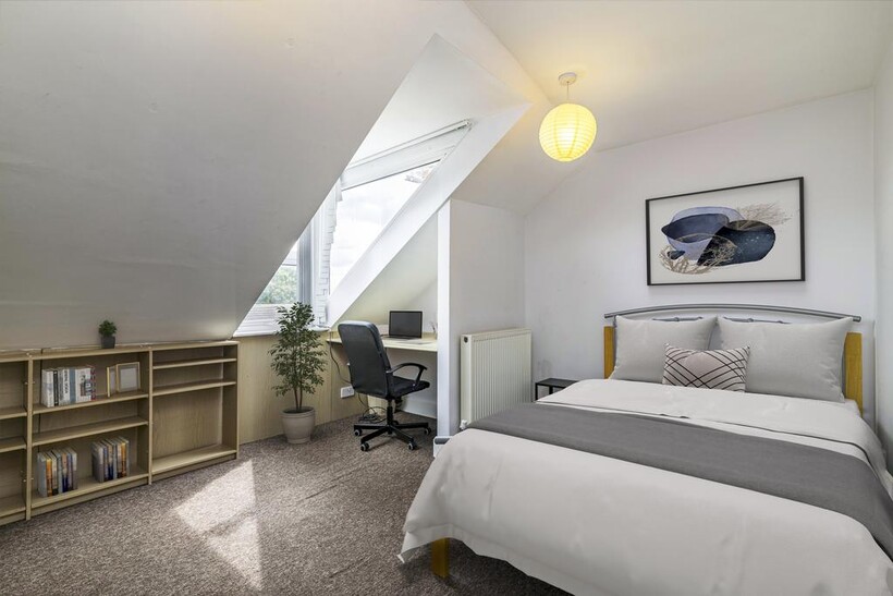 All bedrooms are equipped with 4 double bedrooms with double beds, a wardrobe, a chest of drawers, a desk and desk chair. The house has 2 bathrooms, a fully refurbished kitchen, a lounge with a TV provided, and a dining room.