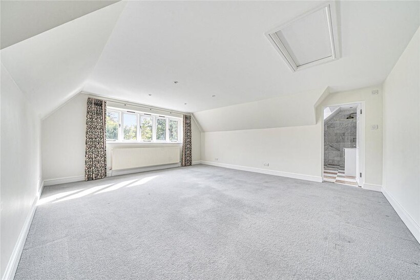 Upstairs, the principal bedroom suite is a tranquil retreat overlooking the gardens, complete with a spacious walk-in wardrobe and a luxurious en-suite bathroom designed for ultimate relaxation. Two further double bedrooms each benefit from beautifully appointed en-suite bathrooms featuring elegant stone tiled floors and sophisticated brass fittings. A stylish family bathroom with a sleek vanity unit serves the remaining bedrooms, combining practicality with tasteful design.