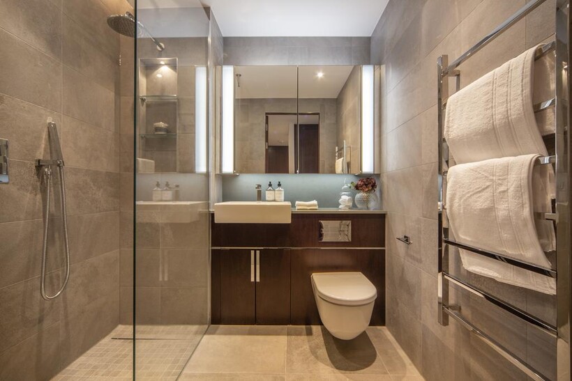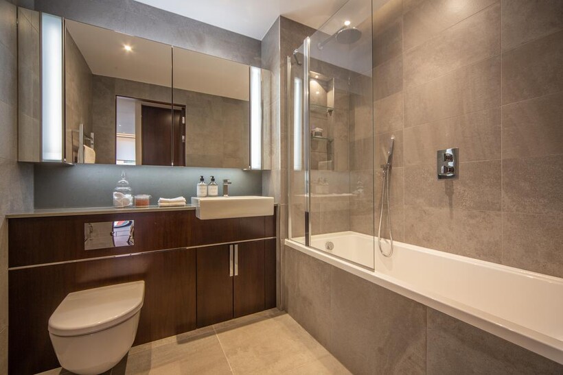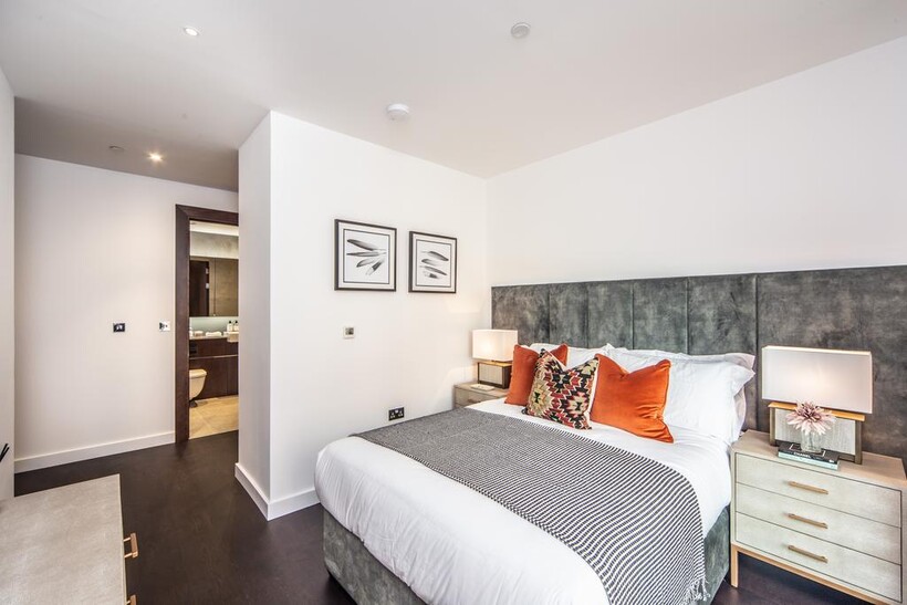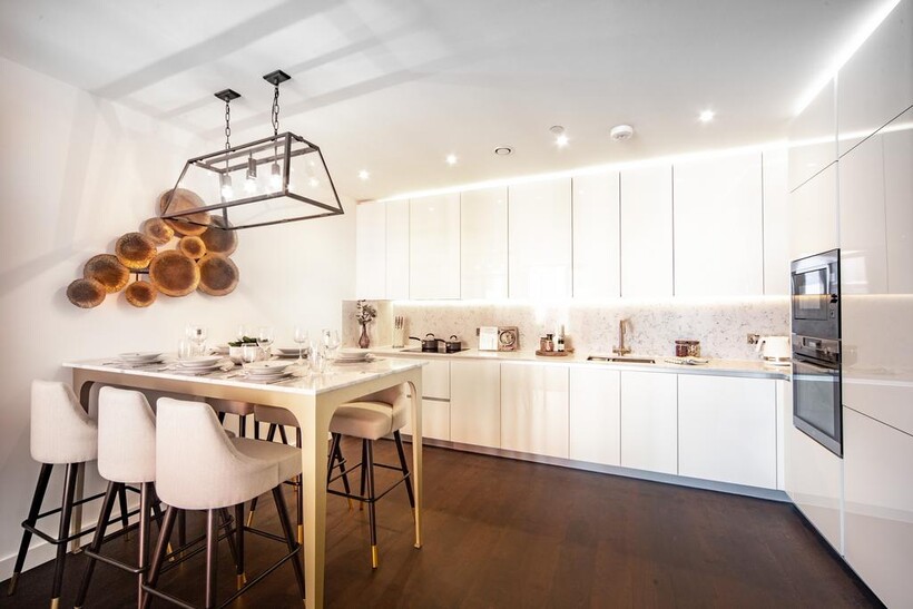 The apartment comprises a spacious reception room complete with Samsung Smart TV's with Bose sound bars incorporating a built in Amazon Alexa to control the apartments lighting, TV and heating systems along with a private balcony. The reception room is open plan with a fully fitted kitchen featuring integrated AEG appliances with floor to ceiling windows providing far reaching views across London.