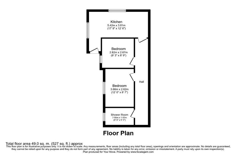 2 Double bedrooms, lounge/kitchen, 1 bathroom.