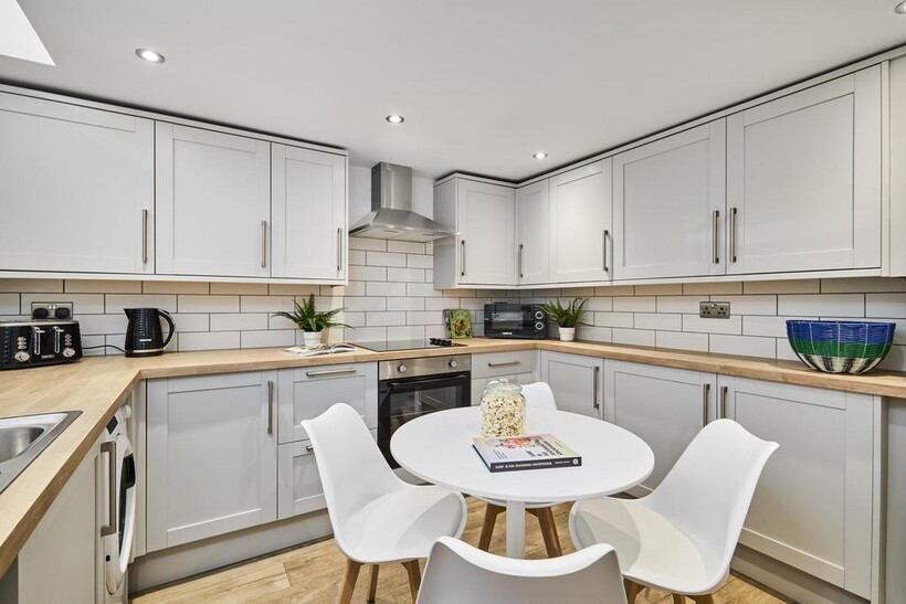 • A contemporary kitchen with high-spec appliances and fittings, perfect for cooking and socialising.