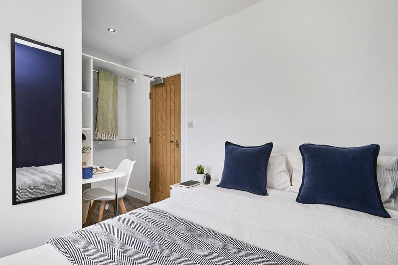 • 6 large double bedrooms, fully furnished with everything you need: double bed, wardrobe, chest of drawers, bedside table, full-length mirror, desk, and chair - ideal for both study and relaxation.