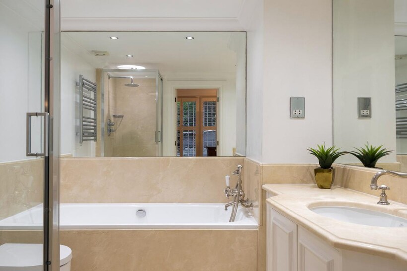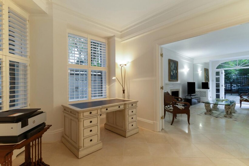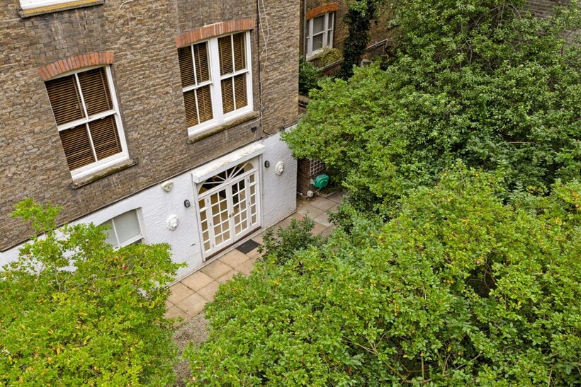To the rear of the property is a second kitchen, perfect as a family or catering kitchen, and an additional large reception room with French doors opening directly onto the beautifully maintained private communal gardens.