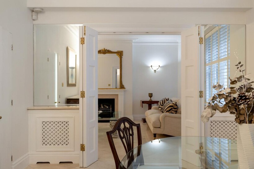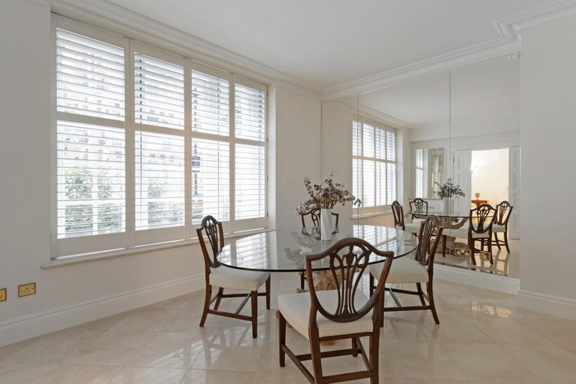 Located on prestigious Basil Street, within the highly sought-after Lincoln House, this beautifully presented apartment is located on the upper ground floor and offers approx. 2,000 sq ft of elegant lateral living space with porter and security systems.The apartment opens into a grand entrance hall, leading to a spacious main reception room and a separate formal dining room, ideal for entertaining. A well-appointed kitchen sits to the front of the property.