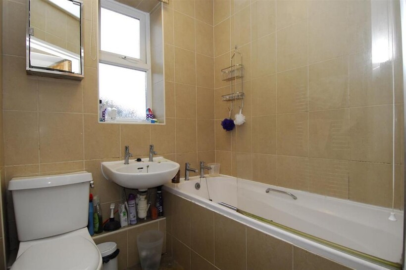 A bathroom comprising a W/C unit, Bath with shower above and a wash basin. The kitchen benefits from having an induction hob & separate oven, and a large fridge-freezer as well as a dining space with table and chairs provided. There is also a washing machine & tumble dryer provided.