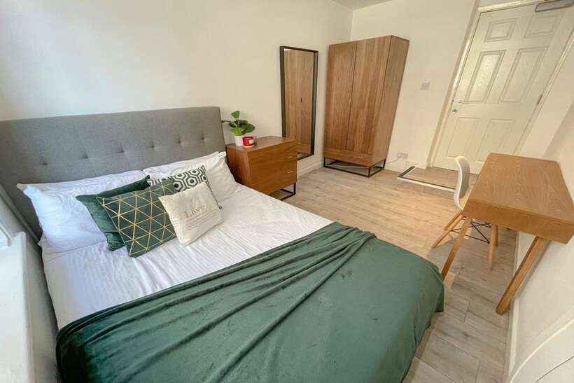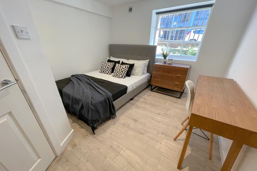 - Each bedroom includes a double bed, storage, and a dedicated study space