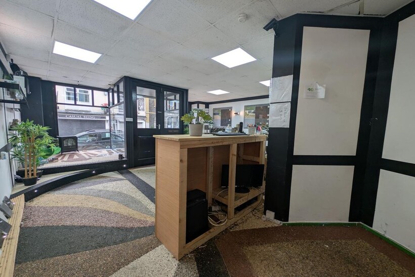 This striking commercial property offers classic period architecture in a prominent location, ensuring a commanding street presence and excellent visibility for any business. The facade features ornate detailing and large display windows, creating an inviting first impression for clients and customers alike. Internally, a series of open plan, versatile spaces benefit from ample natural light, provided by generous windows and complemented by modern lighting fixtures throughout. The interior layout allows for creative adaption, with features such as soundproofing elements ideal for specialist uses. French doors open to a garden space, offering the rare advantage of outdoor access from a commercial property. Additional highlights include ample display shelving, a welcoming wooden decking area, and indoor greenery for a fresh, modern atmosphere. With scope for customisation in both public and private zones, this property presents a unique opportunity for businesses, seeking distinctive, high-impact premises.