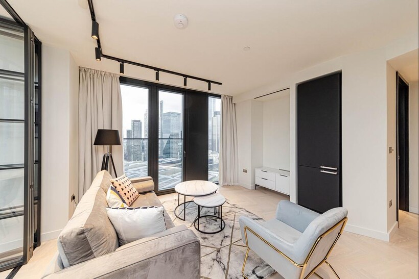 Presenting an exceptional two-bedroom, two-bathroom apartment to rent in the vibrant Broadgate area. Ideally located on Sun Street, this contemporary home offers 861 sq. ft. of beautifully designed living space on the 23rd floor and is available immediately.The apartment features a bright and spacious open-plan kitchen and living area, complemented by floor-to-ceiling windows that flood the space with natural light and offer impressive views of the city skyline. Thoughtfully designed interiors include modern finishes, ample built-in storage, and the added comfort of air conditioning - a rare luxury in London.