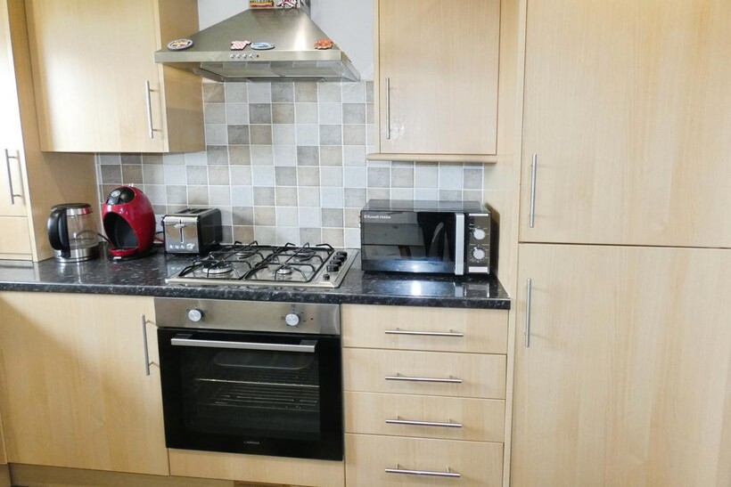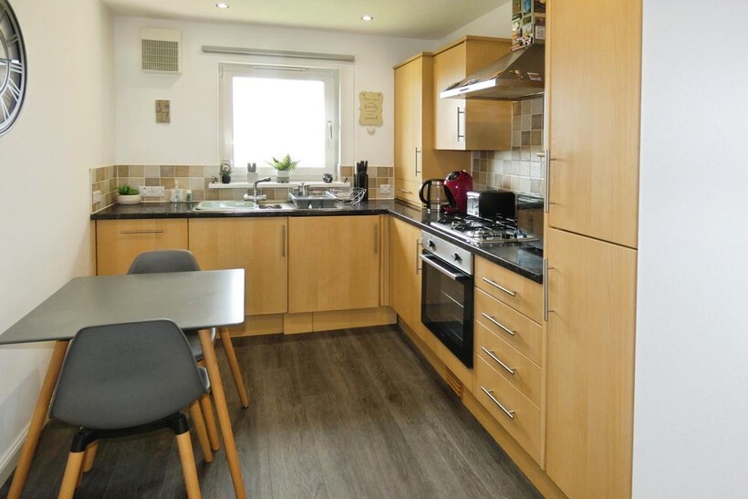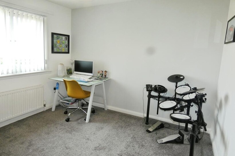 No. 17 Dasher Gardens, Ardrossan, is available for rent in November. This property features a large lounge area with a grey corner and grey carpet, two large bedrooms with an ensuite, and is partly furnished, equipped with built-in kitchen appliances, and has a modern tiled shower room. One of the benefits of this property is its proximity to Stanley Primary School and St. Peter's, as well as local bus routes to amenities.