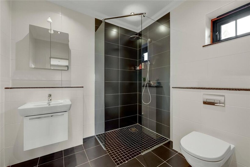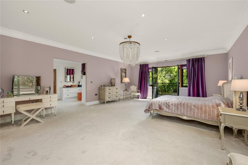 The residence boasts seven bedrooms, many of which feature en-suite bathrooms. The principal suite is a true highlight, offering a spa-inspired en-suite, a walk-in dressing room, and access to a private balcony. At the heart of the home is an expansive open-plan kitchen and family room. French doors open onto beautifully landscaped gardens and a sun terrace, providing the perfect setting for seamless indoor-outdoor living and entertaining. Additionally, a self-contained en-suite bedroom is located above the garage, offering ideal accommodation for guests, staff, or extended family.