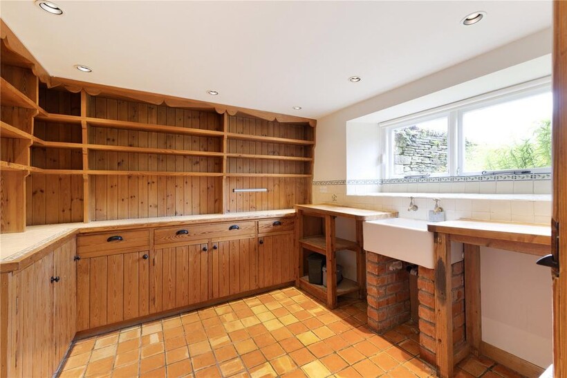 The ground floor welcomes you with a warm and inviting sitting room, centred around a charming log burner set within an inglenook fireplace, the perfect space for relaxing evenings. The kitchen enjoys bespoke pine cabinetry, ample shelving, and a generous utility area, creating a practical and homely heart to the property. Also on this level is a fifth bedroom and a well-appointed bathroom, ideal for guests or for use as a ground-floor suite.