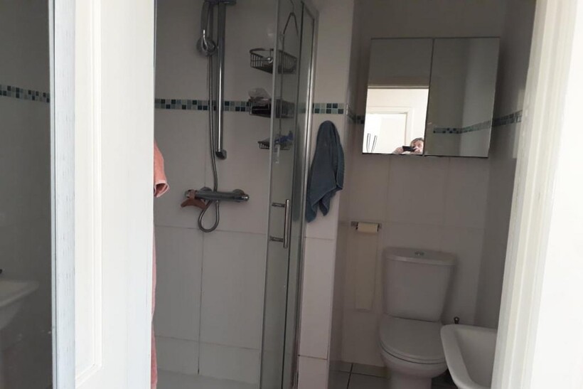 Door off kitchen area leads to double bedroom and ensuite shower room.