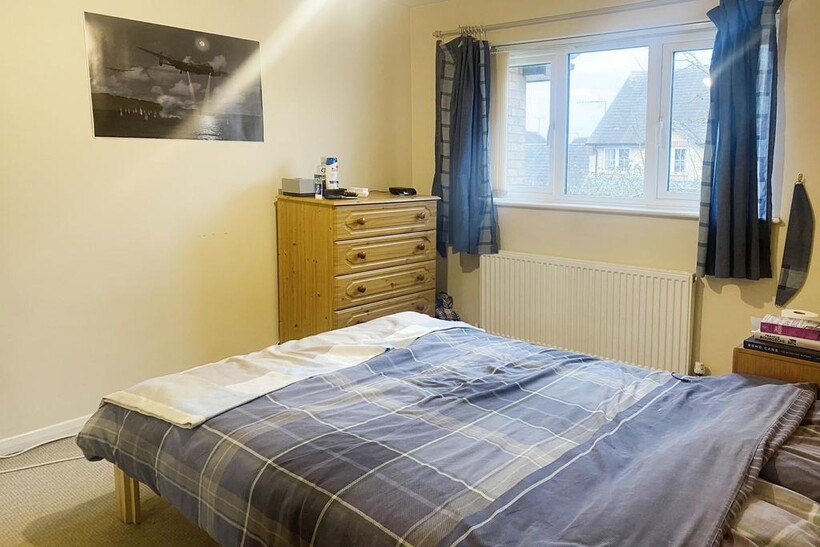 Upstairs, the bedroom has plenty of room for a double bed and wardrobe, with lots of natural light from the large window.