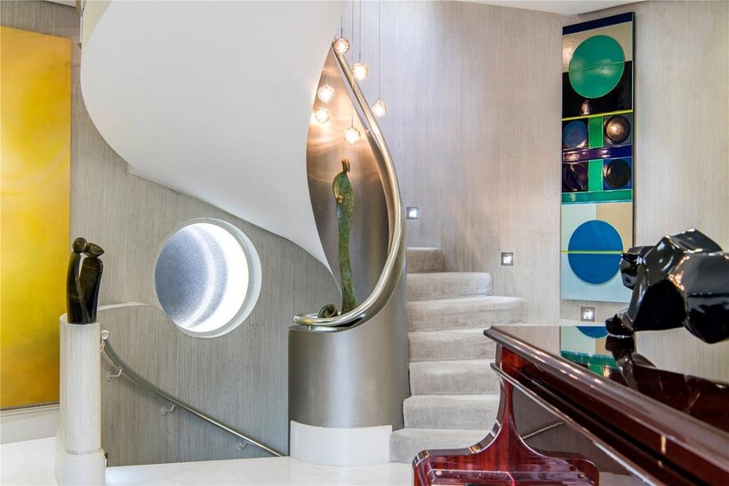 The accommodation is primarily arranged over 3 floors with the built in Fendi kitchen with breakfast room, living/dining room and TV room - all on the raised ground floor. The principal bedroom suite occupies the whole of the first floor and comprises large bedroom, two large intercommunicating dressing rooms, bathroom and sitting/gym area and access to a terrace overlooking the garden. There are 4 more double bedrooms – all with en suites - on the second floor. Portholes light the staircase with natural light.