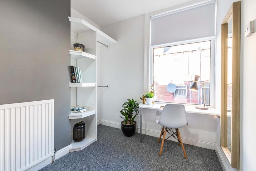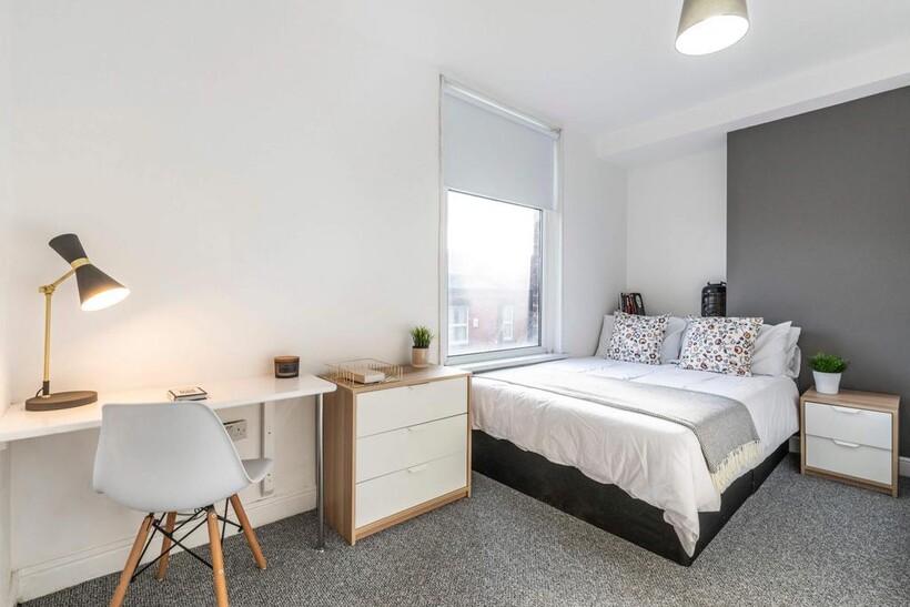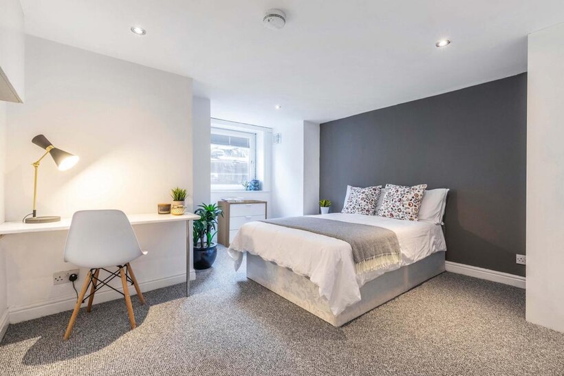 • 6 large double bedrooms, fully furnished with everything you need: double bed, wardrobe, chest of drawers, bedside table, full-length mirror, desk, and chair - ideal for both study and relaxation.