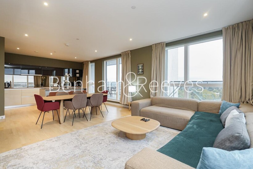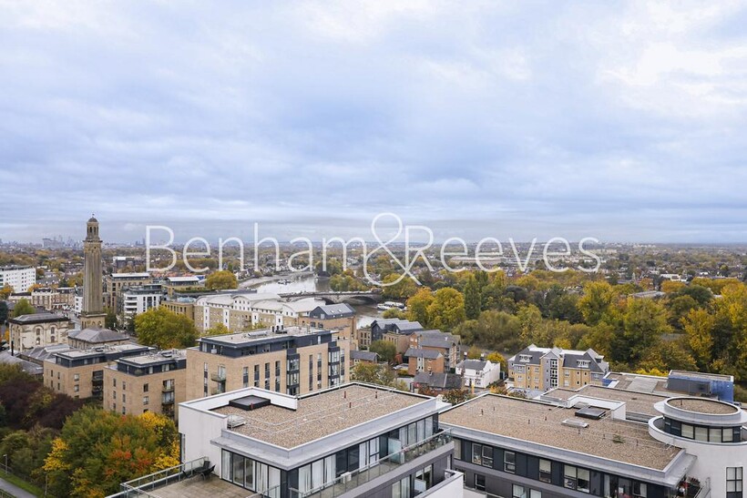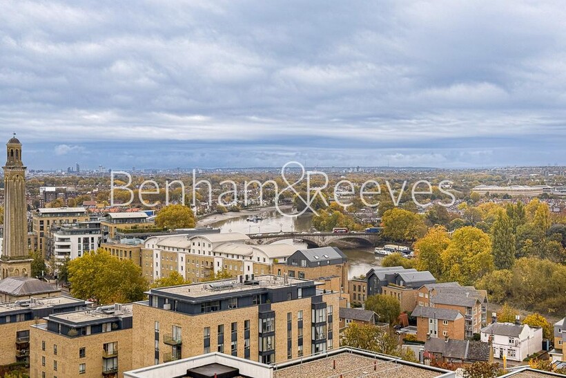 The generously proportioned living area spans comprises a spacious reception with wood flooring, plenty of space for dining/ entertaining, floor-to-ceiling windows leading out to a large private terrace affording delightful River views, and a fully fitted modern kitchen with integrated appliances. There are three double bedrooms with good storage space, en-suite to the principal bedroom, a second bedroom, and a sleekly designed family bathroom. The apartment is offered on a furnished basis. Hyperion Tower looks directly South over the River Thames, while the development benefits from a 24 hour concierge, communal gardens, residents' gym, and secure UNDERGROUND PARKING. Kew is a short journey away and provides boutique shops, popular restaurants, historical buildings, and plenty of open spaces. The property is a short walk from Kew Bridge National Rail Station which offers direct services to Waterloo in 30 minutes.