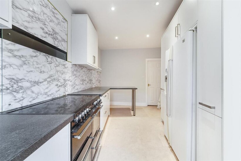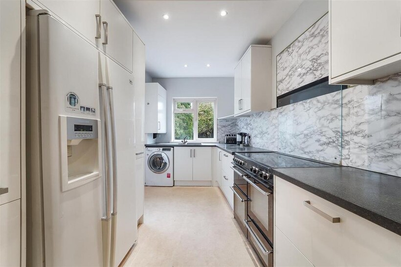 Kitchen - Good-size kitchen with fridge-freezer, washing machine, range cooker appliances. There is a built-in breakfast bar, a wide array of storage units and pan drawers and access into the rear garden.
