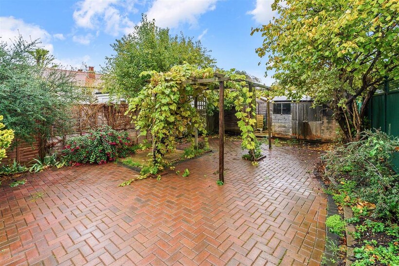 Rear Garden - Low maintenance garden with storage shed, pergola and easy to care for foliage